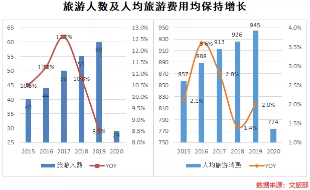 旅游行业大体上遵循大消费的投资逻辑,主要是受益于居民消费意愿的提升,以及消费升级。因此行业的发展与居民收入水平和消费在经济中的占比息息相关。近些年来,旅游行业基本上呈现旅游人数和人均旅游消费双增长的趋势。从长期来看,旅游的需求是日益增加的,如果再考虑到最近国家对于三胎及教育的态度,将来旅游的需求有可能会迎来爆发式增长。需求的增长是旅游取得超额收益的根本来源。