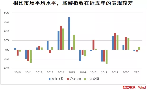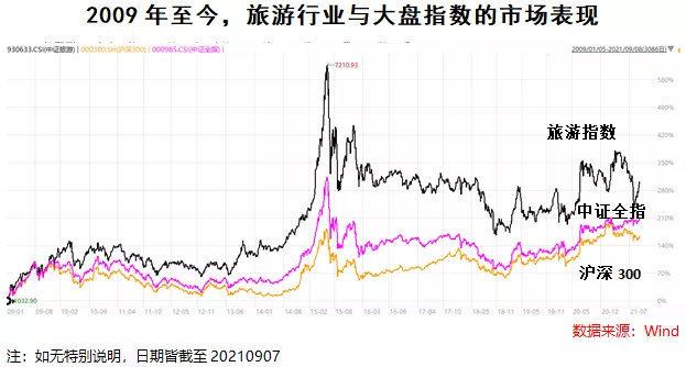 特别是疫情以来,旅游由于其人群聚集的属性,一旦出现零星的病例,就会率先被关闭,因此行业复苏极其缓慢,市场表现也较差。