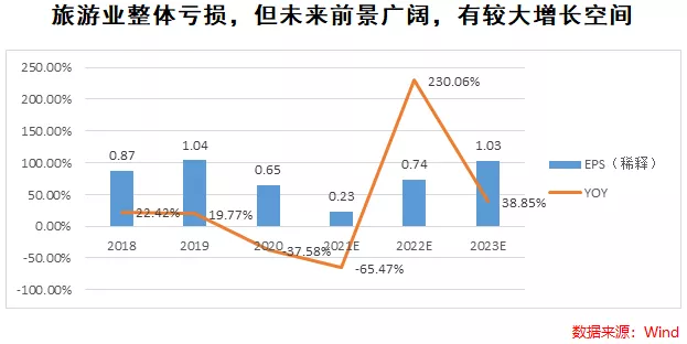 从盈利水平看,当前旅游行业已经处在最底部阶段,考虑到疫苗的快速普及推广,旅游行业有望在未来实现快速的恢复性增长。