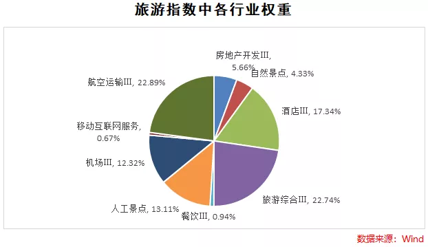 行业分布方面,旅游、航空运输、酒店、景点、机场五大细分行业占比近90%,旅游指数中的成分股基本覆盖了行业的前端和中端,产业链的分布比较均衡,指数能够很好的反应整个旅游行业的市场表现。