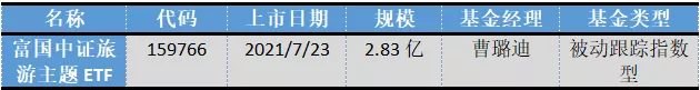 目前,跟踪中证旅游指数的基金仅有一只,为富国中证旅游主题ETF(159766)。