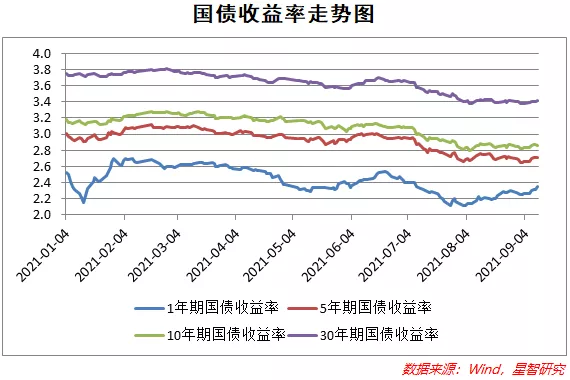 上周1年期国债收益率上行8.1BP至2.35%,5年期国债收益率上行4.4BP至2.71%,10年期国债收益率上行3.5BP至2.86%,30年期国债收益率上行2.7BP至3.41%,国债收益率全线上升,短端上行幅度更大,收益率期限曲线出现熊平。