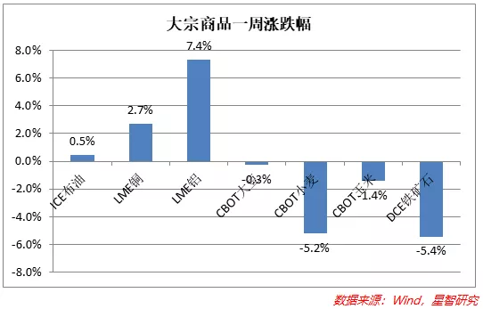 上周,铁矿价格再度回落,周跌幅为5.4%。供应方面,全球铁矿石发运总量3237万吨,环比增加83万吨,供给有所恢复。需求方面,Mysteel调研247家钢厂高炉开工率环比下降0.65%,高炉产能利用率环比下降0.68%。