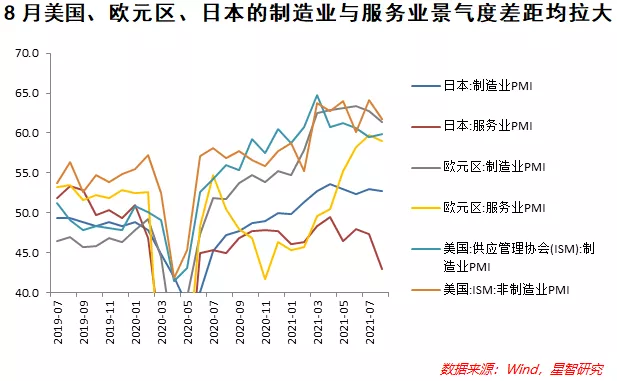 全球疫情的反弹延长了中国出口高增的时间窗口,美国、欧元区和日本的服务业景气度在8月有所下降,继续支撑耐用消费品需求增加,而制造业景气度维持平稳,表明制造业库存需求也在扩张,这些都支撑了中国出口的继续增长。