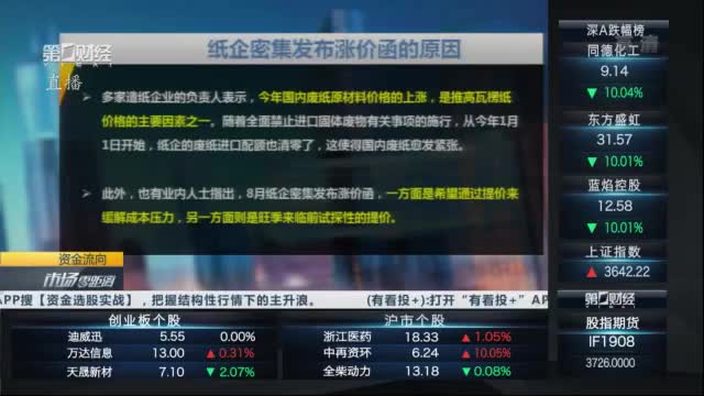 造纸板块今日大幅冲高,板块涨幅近7%,板块中可靠股份收获20CM涨停,景兴纸业、岳阳林纸、华泰股份、恒丰纸业、宜宾纸业、青山纸业、民丰特纸等近20股涨停。8月以来,不少造纸企业多次发布涨价函,宣布上调瓦楞纸的出厂价。