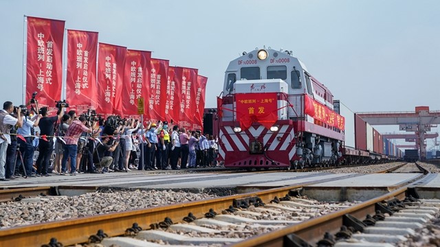 9月28日上午,“上海号”中欧班列从上海的闵行站货场始发,将于10月中旬抵达德国汉堡。这是中欧班列开行10年来,首次迎来上海始发的班列。