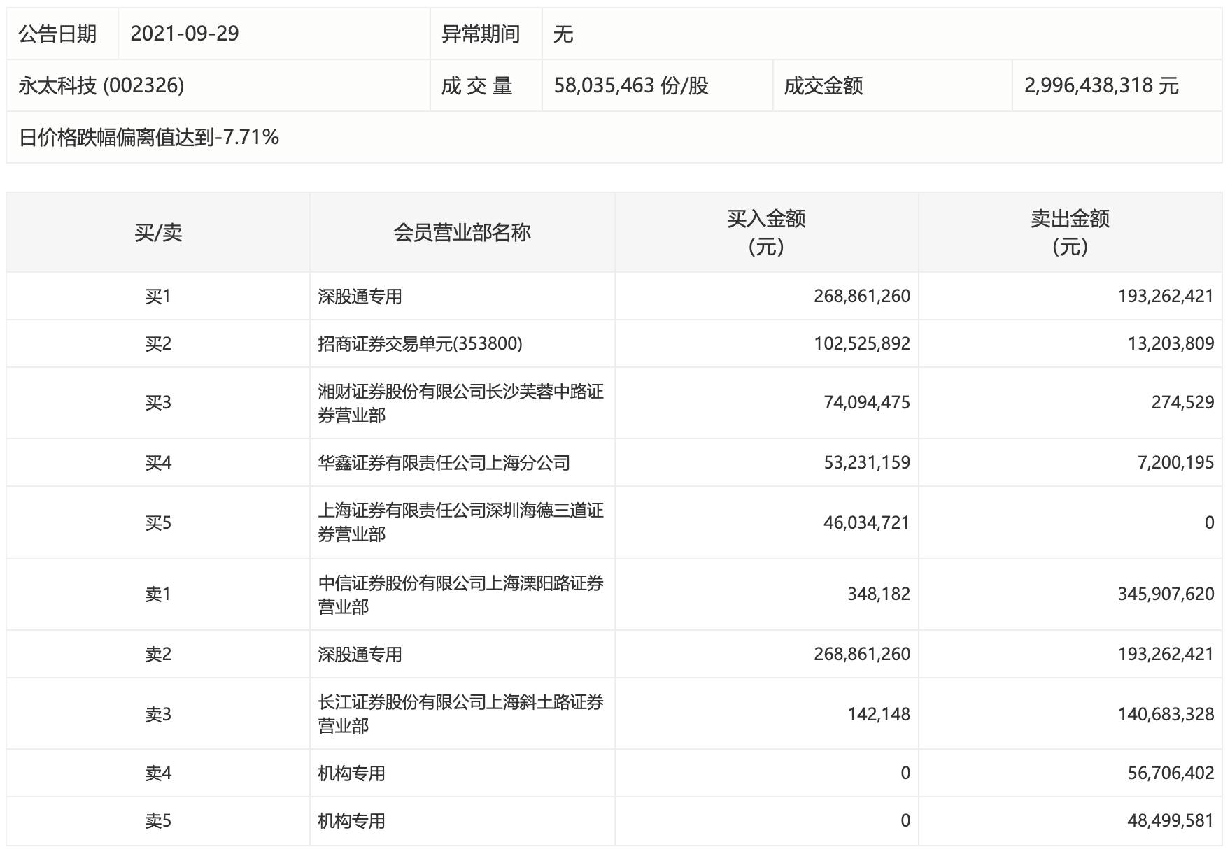 机构加速出逃锂矿板块。盘后数据显示,近三个交易日,两机构累计卖出盛新锂能3.9亿元,两机构卖出融捷股份2.45亿元,两机构卖出江特电机2.94亿元。中游六氟磷酸锂龙头永太科技亦未能幸免,今日该股遭两机构卖出1.05亿元。