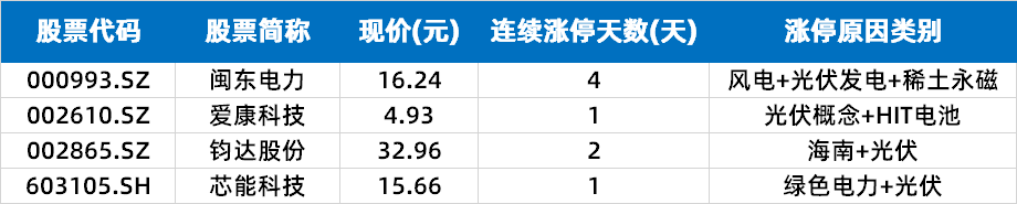 值得注意的是,闽东电力已经连续4个交易日涨停,最新股价为16.24元/股。据了解,闽东电力主营电力生产与开发,致力于清洁能源、新能源等领域的发展。