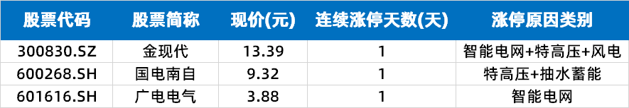 特高压板块盘中冲高,截至收盘,金现代(300830.SZ)、国电南自(600268.SH)等涨停。