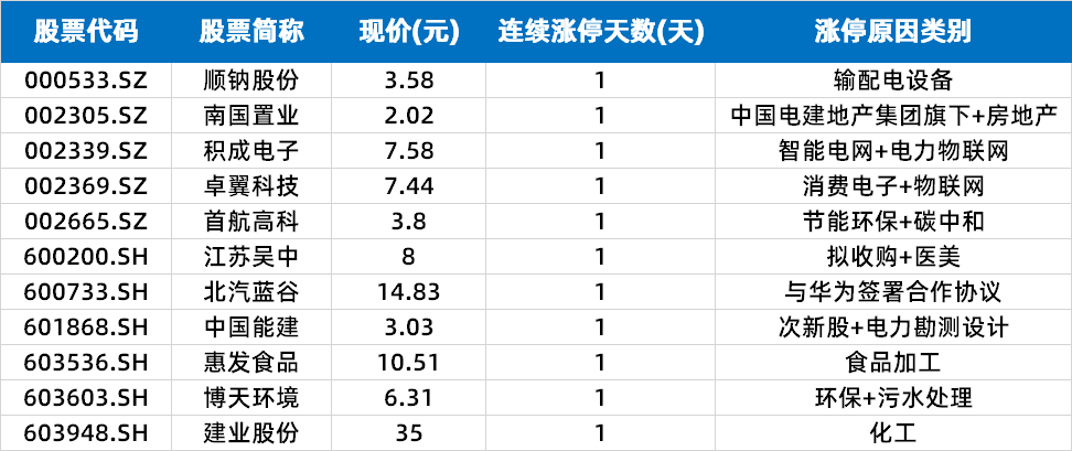 按行业来看,其他涨停个股零星分布于食品饮料、物联网、环保等板块。