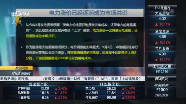通宝能源、深南电A涨停,西昌电力、乐山电力等触及涨停,龙头闽东电力连续4涨停后,今日盘中股价再度触及涨停,并逼近历史最高点。中金公司的最新研报指出,火电亏损严重,电价放开或是未来趋势。电企有较强涨价诉求,标杆电价基础上上浮10%的措施可能蔓延到全国范围,利好明年长协电价谈判。