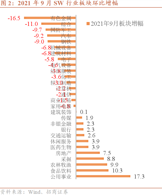 9月A股总体收涨,但风格出现反转。9月沪深300指数上涨1.3%、创业板指上涨1.0%。其中大宗商品板块由于恐高情绪与美联储确定于2021Q4启动Taper出现剧烈回调;成长风格也继续震荡回落;而前期低迷的食品饮料、农林牧渔、医药生物等板块出现反弹;稳定风格(交通运输与公用事业)出现加速,尤其是电力、海运等涨幅显著;金融风格(金融、房地产)稳步回升,呈现相对收益。