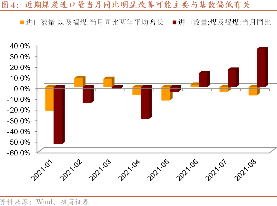 6月以来我国煤炭的进口数量当月同比增速持续提高,6-8月的增速分别为13.1%、16.4%和35.8%。但煤炭进口量增速的逐月加快是建立在去年低基数的基础之上。8月煤炭进口量环比增速已跌至负增长,若用两年平均增速衡量,7、8两月煤炭进口量也是负增长。因此,尽管电力供应较为紧张,但煤炭进口仍较为乏力。