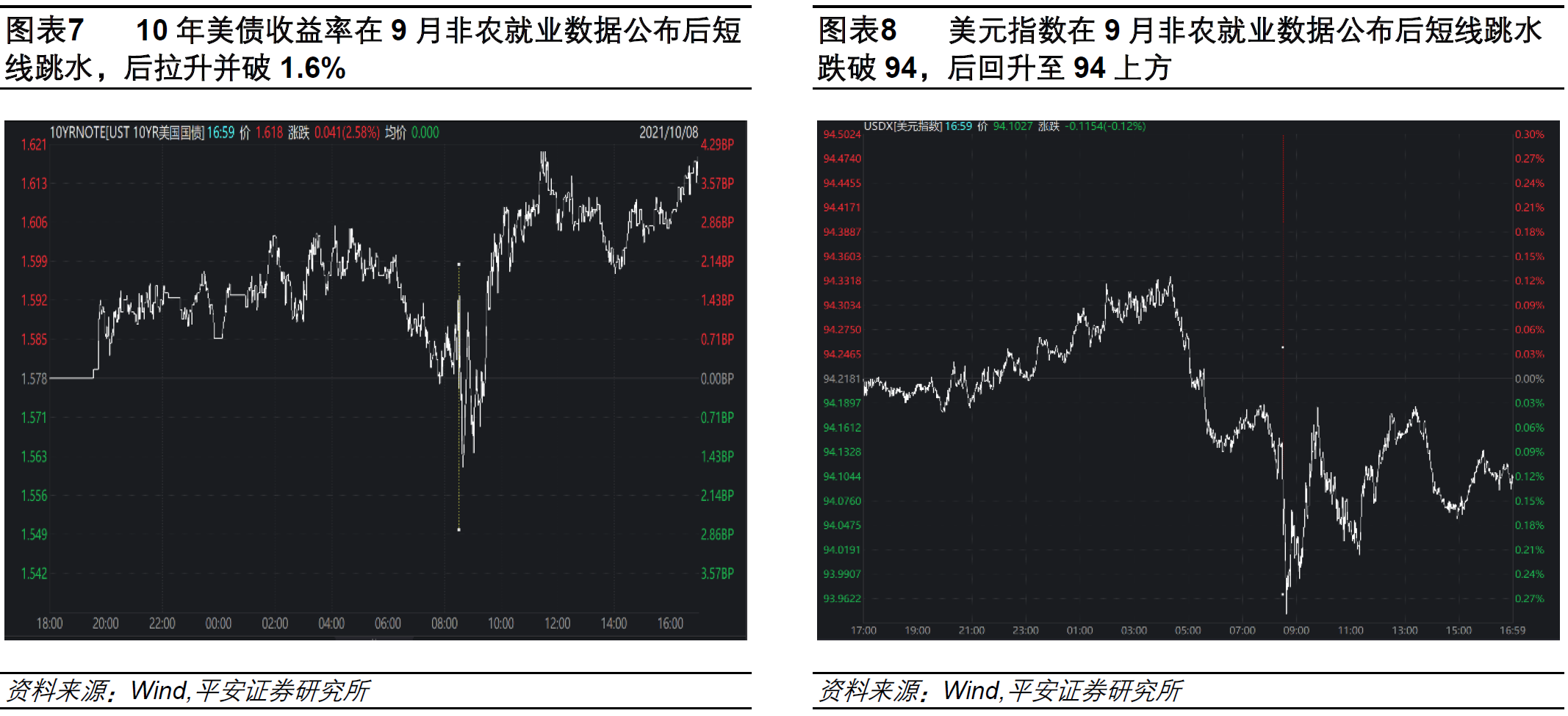第三,我们在报告《美联储“最后的温柔”》中分析,如果美国就业数据不够好,市场可能怀疑美联储能否如期Taper,在这种情况下,美联储需要保证信誉及政策的可预见性,大概率仍会年内开始Taper。不过,美联储在确保Taper路线图大方向不变的前提下,仍需要尽量照顾市场情绪、与市场预期尽量同步。考虑到:10月非农数据将于11月5日公布,而11月议息会议将于2-3日召开。换言之,9月“弱非农”是市场预判美联储11月议息会议行动的重要依据,11月即刻宣布和实施Taper可能是一个“鹰派意外”(hawkish surprise),更温和、也更稳妥的做法是:11月“预告”美联储将于12月开始实施Taper。当然,9月的“弱非农”多少都增加了美联储行动的不确定性,仍需警惕Taper靴子正式落地前的市场波动。