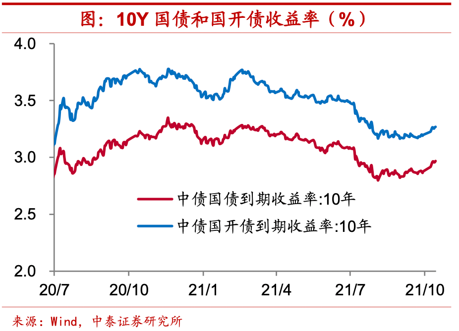 债券收益率上行,利差走势分化。本周10年期国债收益率周度均值上行4.6bp,10年期国开债收益率周度均值上行3.6bp。10Y-1Y国债走阔4bp,10Y-1Y国开债期限利差收窄0.9bp。