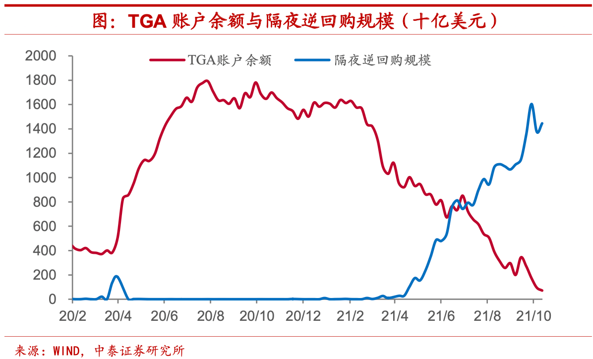 最后,财政部融资将从市场抽水,也会推升收益率水平。疫情以来,财政部通过压降TGA账户余额向市场释放了大量的流动性,当前TGA账户余额已不足600亿美元,财政部面临流动性枯竭。而在财政部发债融资后,TGA账户余额将有所回升,此前对于债券收益率的压制将转为推升。