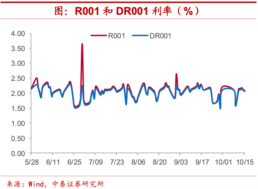 资金利率上行。DR001周度均值环比上行26.7 bp,DR007周度均值环比上行18.9 bp,R001周度均值环比上行29.9 bp,R007周度均值环比上行15.3 bp。R007-R001与DR007-DR001周度均值分别为-14.6 bp和-7.8 bp。