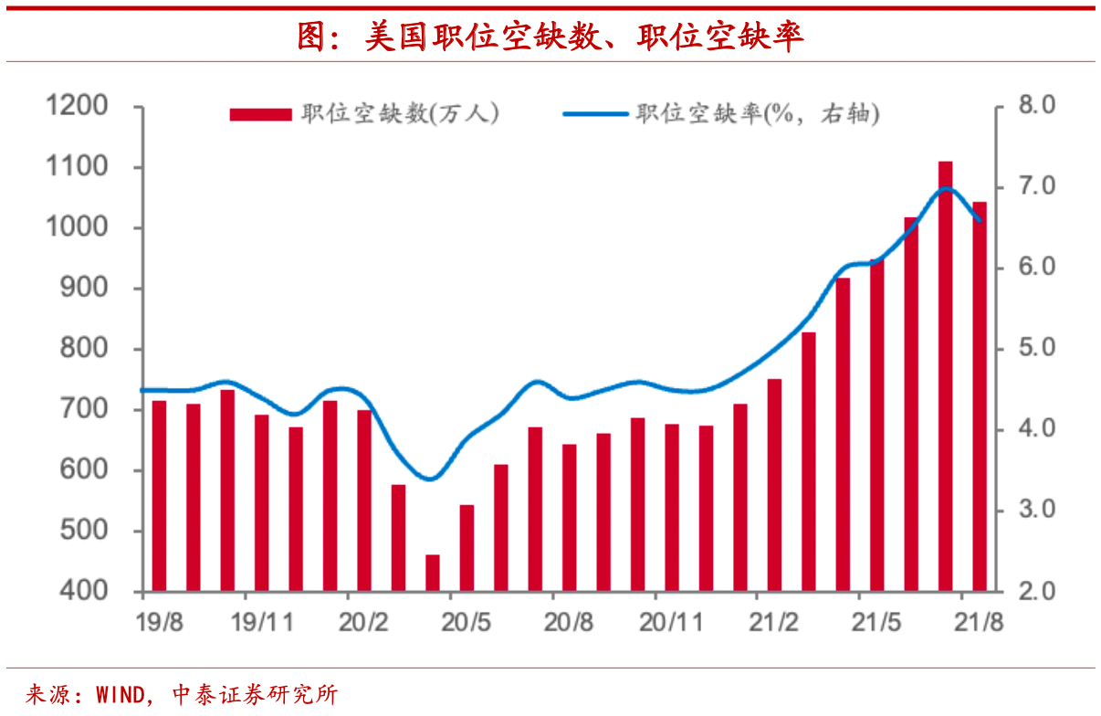 美国8月职位空缺数下滑。8月职位空缺数降至1043.9万,前值1109.1万,是今年以来首次下降。8月职位空缺率为6.6%,前值7%,有所回落。受新冠疫情和供应限制的影响,美国8月贸易逆差额环比飙升4.2%,达到733亿美元,创历史最高纪录,同时9月NFIB小型企业信心指数为99.1,创今年3月以来新低,并且美国8月批发销售环比下滑1.1%,创去年4月以来新低。欧元区10月ZEW经济景气指数录得21,前值为31.1,10月ZEW经济现况指数15.9, 前值22.5。