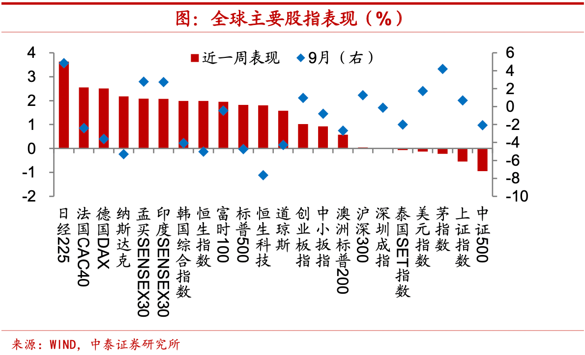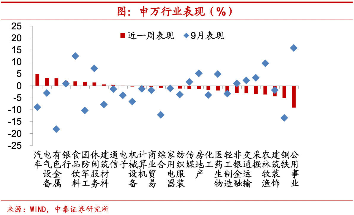 国内权益方面,汽车领涨。本周国内股票涨幅前三的行业分别为汽车、电器设备以及有色金属,涨幅分别为5%,3.3%及3.2%。钢铁和公共事业显著回落,领跌A股。
