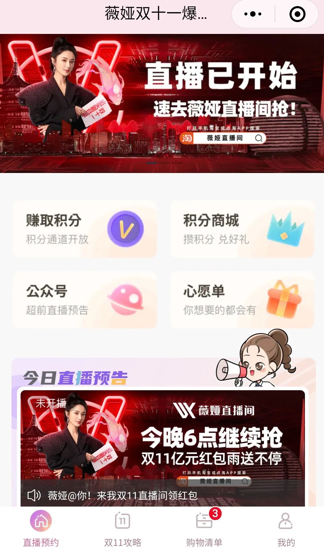 此外,“薇娅双十一爆品清单”小程序也在近日上线,此次双11的产品信息均在上面同步更新,将心仪商品加入清单后,可以直观看到省钱金额,可以说诱惑力十足。C站注意到,小程序中上线了积分兑换商品的功能,而其中薇娅直播间购物转换积分的模块显示即将上线,可见在私域运营方面薇娅也做出了全新尝试。