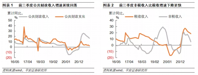 1、受高基数和经济放缓的拖累,9月公共财政收入单月负增长。非税收入两年平均增速年内首次负增长,而税收收入的两年平均增速连续6个月回升。