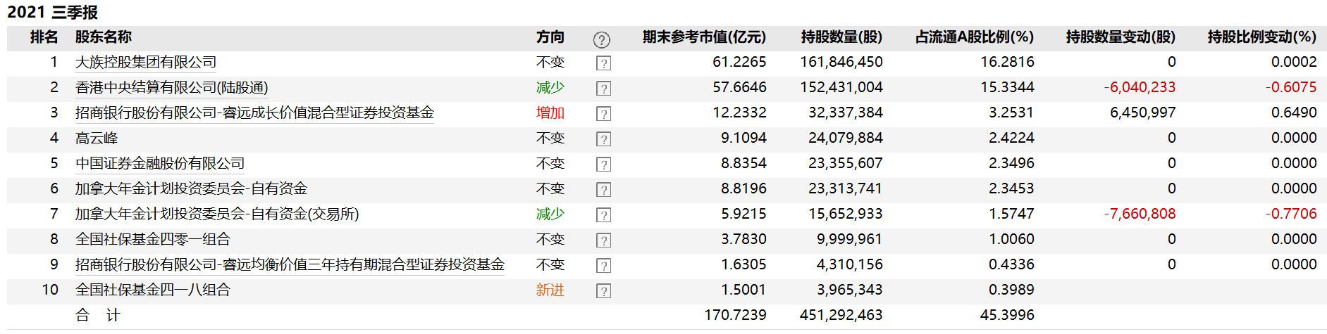 值得注意的是,截至三季度末,睿远成长价值混合型证券投资基金持股比例由二季度末的2.43%提升至3.03%。