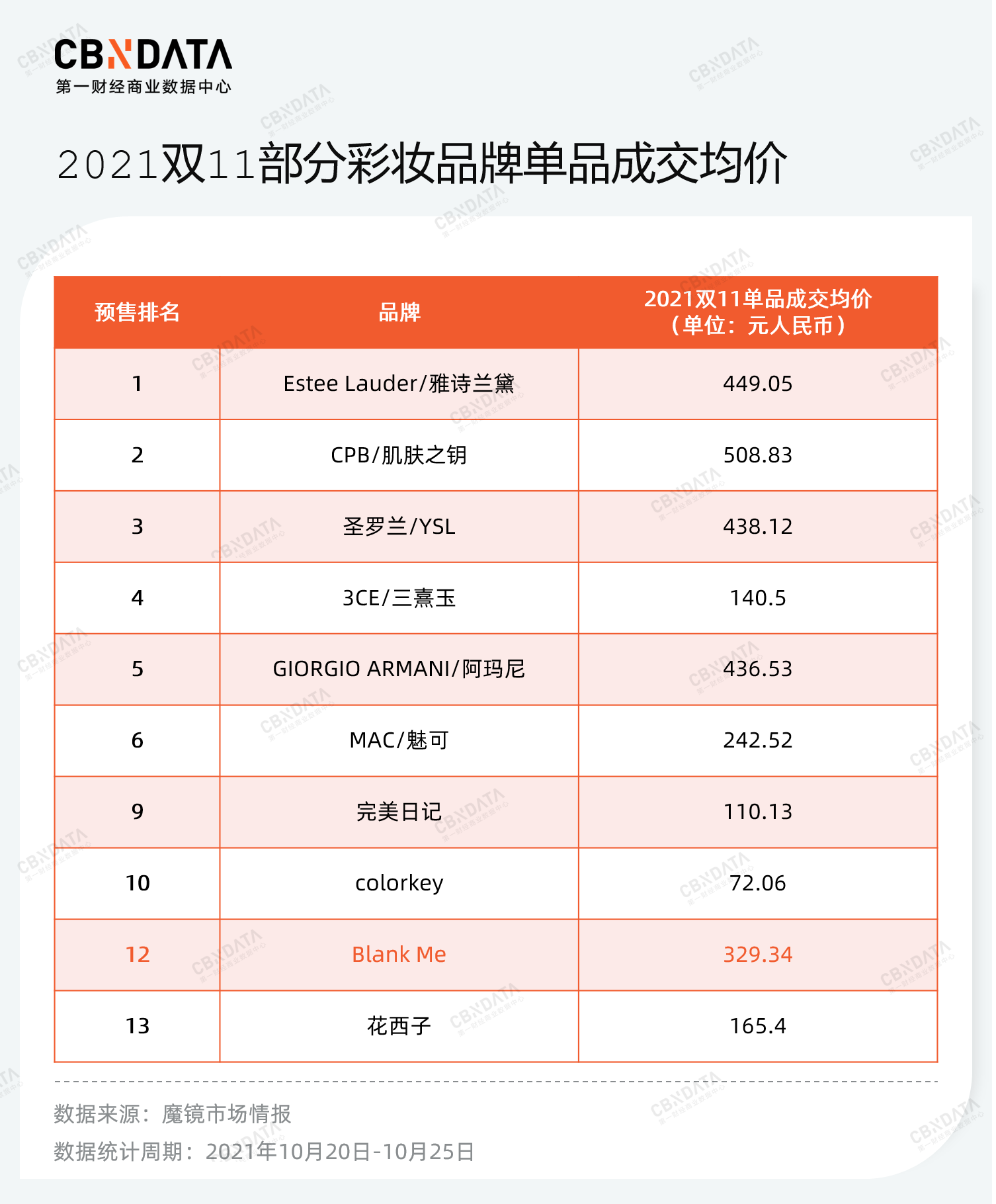 除了明星品牌们的排位轮换,国货彩妆圈还有“黑马”杀出。Blank Me在预售首日空降彩妆榜第三,仅次于雅诗兰黛、兰蔻。这个成立于2016年,专攻亚洲女性底妆的品牌,靠着小黑盒、小银盒两款气垫粉霜,一度领跑今年双11国货彩妆榜。值得注意的是,Blank Me的定价堪称性价比国货彩妆中的一股“逆流”。其双11单品成交均价高达329元,高于MAC、3CE等国际品牌,而完美日记、colorkey的单品成交均价在百元上下。