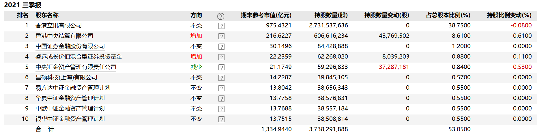 前十大股东持股变动上,香港中央结算有限公司持股6.07亿股,相较2021年中报增持超4376.95万股;睿远成长价值混合型证券投资基金持股6226.8万股,相较中报增持803.92万股;中央汇金资产管理有限责任公司则减持3728.72万股。