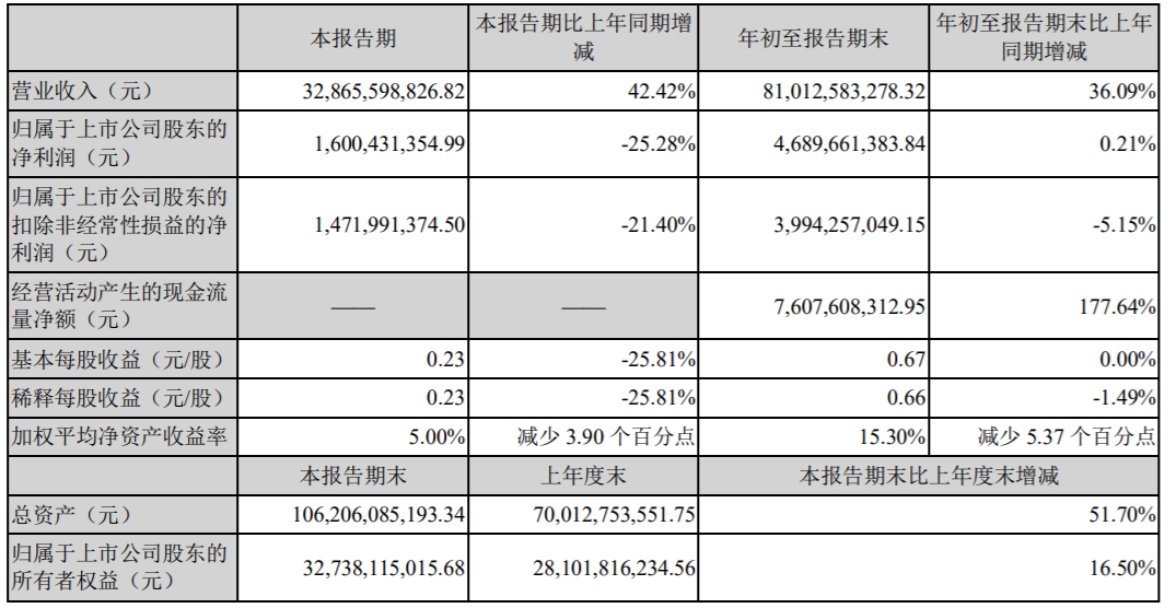 10月27日,立讯精密披露三季报称,前三季度净利润46.9亿元,同比增长0.21%,其中第三季度净利润16亿元,同比下降25.28%。