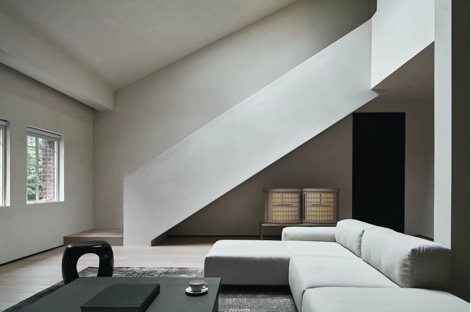 当自如曼舍团队接到平安大楼改造任务时,他们采用了最高的设计和装修标准,选用了全实木以及最接近大自然颜色质感的砂岩石,充满了自然的气息。整个房子全部做了艺术漆,肌理效果本身非常丰富,形成了一种非常质朴的当代现代主义艺术设计空间。