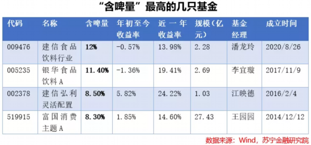 在限定“含啤量”较高的前提下,我们可以简单对比这几只基金的投资价值。