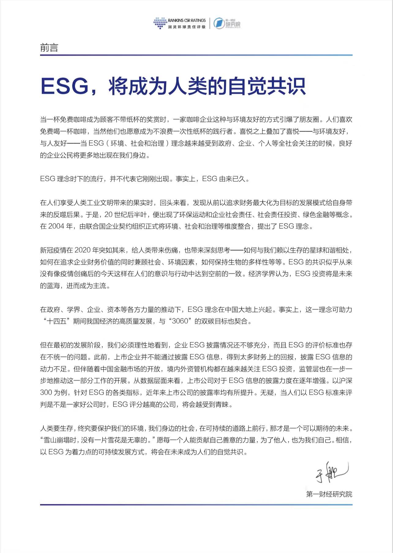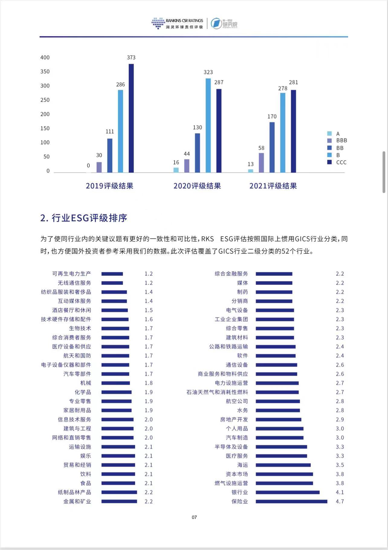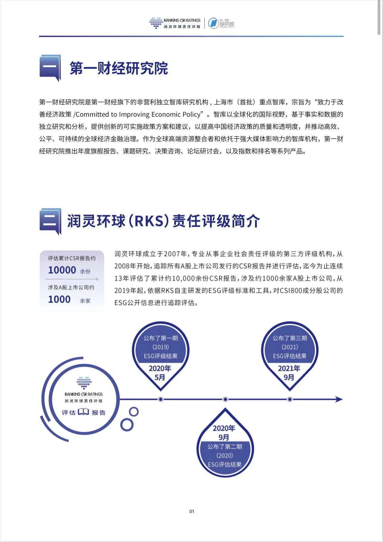 10月29日,润灵环球评级公司和第一财经研究院联合发布《2021润灵环球(RKS)ESG评级报告》(以下简称《报告》)。