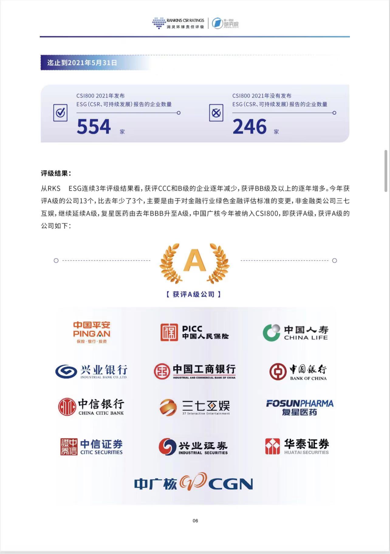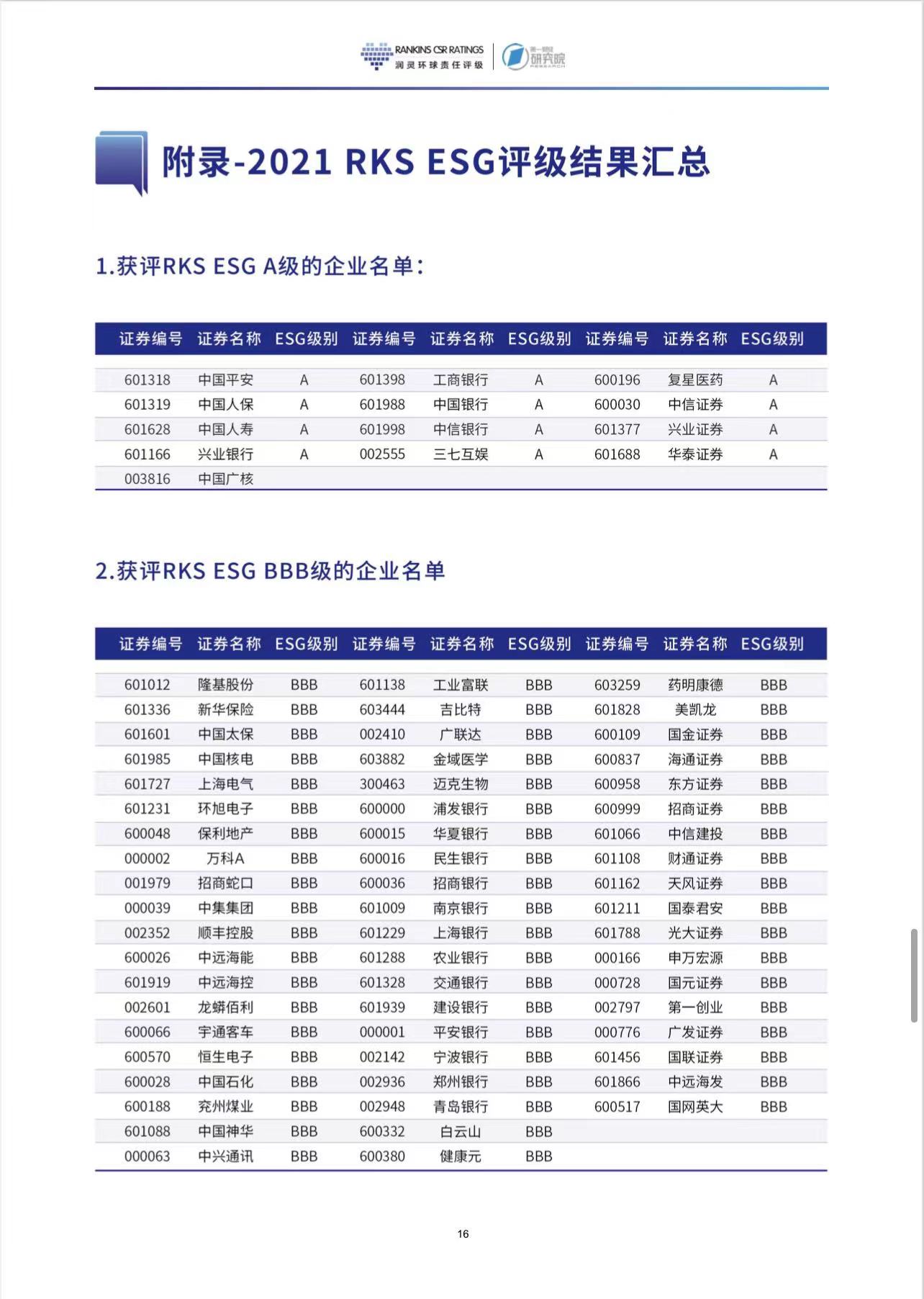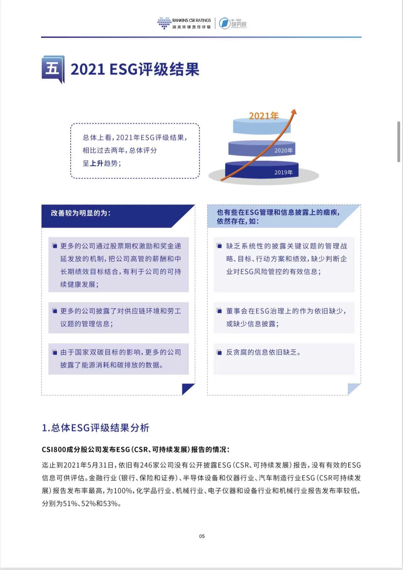 10月29日,润灵环球评级公司和第一财经研究院联合发布《2021润灵环球(RKS)ESG评级报告》(以下简称《报告》)。