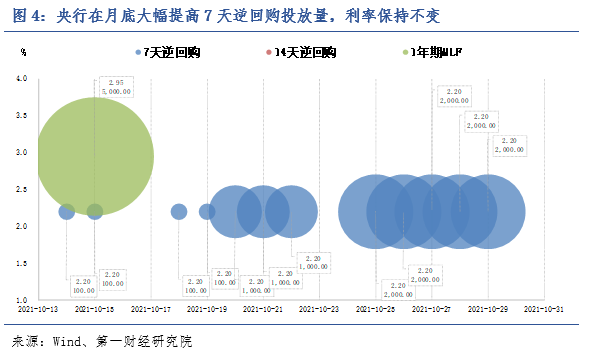 在10月25日至10月29日当周,为对冲机构月末的流动性需求,央行加码逆回购投放,由原先常规的每日100亿元大幅上升至2000亿元,7天逆回购利率保持不变,维持在2.2%。
