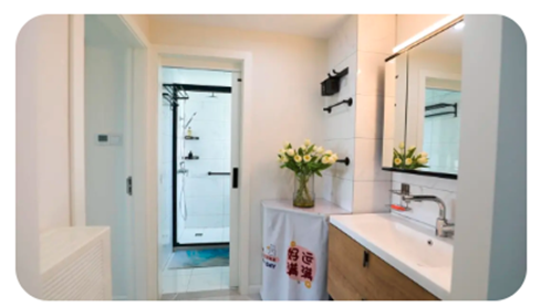 #充分利用浪费的走道面积,移动三面墙体,卫生间实现三分离,解决了多人需要用厕的困扰