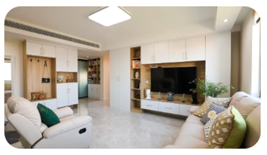 客厅/宽阔明亮本案原本房子是没有客厅位置的,进门后则是一条长长的走廊,光线较暗,三代人居住没有一个空间能够一起共享互动。