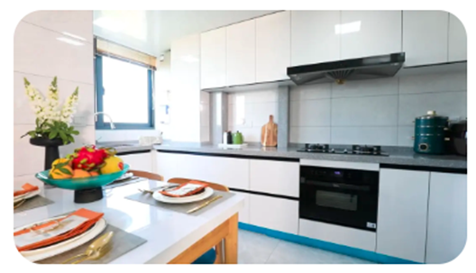 由于居住的人较多,厨房和餐厅是需要重新规划,改造出一个比较开阔的空间,让一家人能够开开心心的坐在一起用餐。
