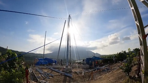 据清水淳司介绍,Challenergy公司的核心产品是一台能够经受强风和暴雨的垂直风力涡轮机。这台垂直轴型风力涡轮机没有螺旋桨叶片,而是利用三个垂直旋转的圆柱体。它们能够对来自不同方向的风做出反应并旋转。垂直轴的设计消除了风向变化对设备的影响;而用圆柱取代螺旋桨,有助于防止涡轮机在强风中过度旋转而损坏发电机。