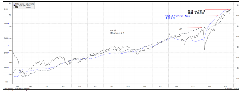 图表3:全球央行扩张资产负债表,推高股市和通胀