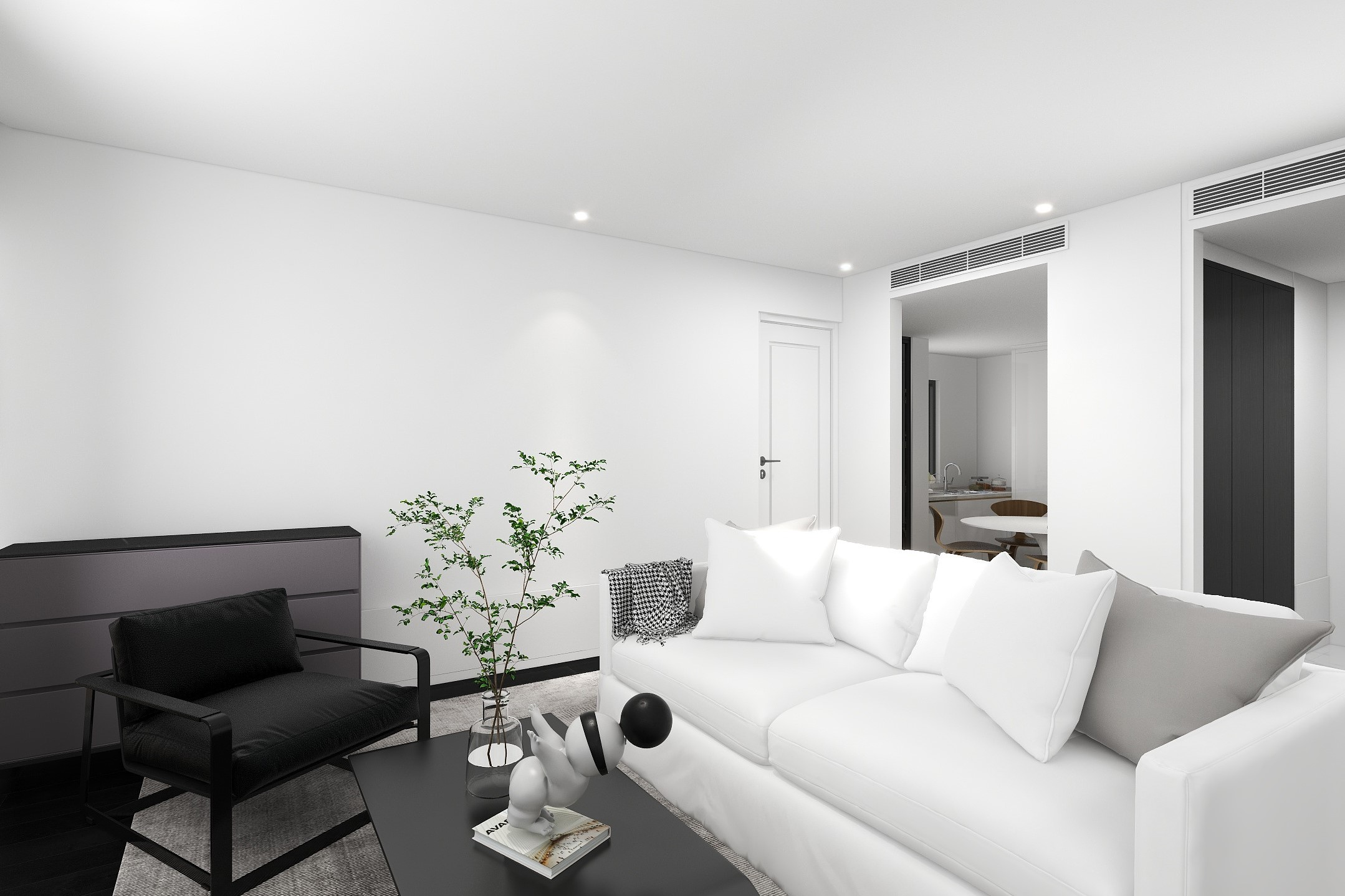 拉平客餐厅间和卧室地面高低差后,设计师选择了黑色橡木地板来完成整体风格。