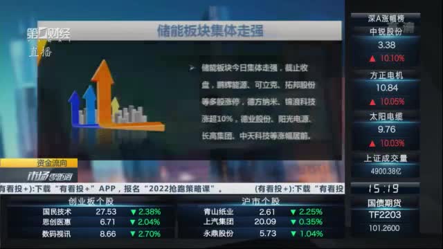 储能板块今日集体走强,截止收盘,鹏辉能源、可立克、拓邦股份等多股涨停,德方纳米、锦浪科技涨超10%,德业股份、阳光电源、长高集团、中天科技等涨幅居前。消息面上,中国能源研究会常务副理事长、国家发展改革委能源研究所原所长周大地28日在《财经》年会上表示,要建立以零碳一次电力为主体的新能源体系,努力方向应该是在2040-2045年左右实现电力系统零碳化,同时在2050-2055年期间实现整个能源生产系统碳中和。他提到,风光发电成本过去10年以来都在下降,储能的成本未来5年会有3倍左右的下降空间。
