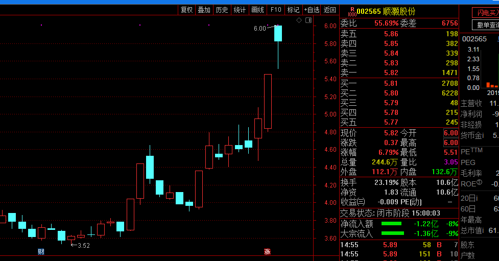 盘面上,顺灏股份今日高开低走,但仍收涨6.79%,近3个交易日累计涨幅超过25%。