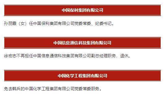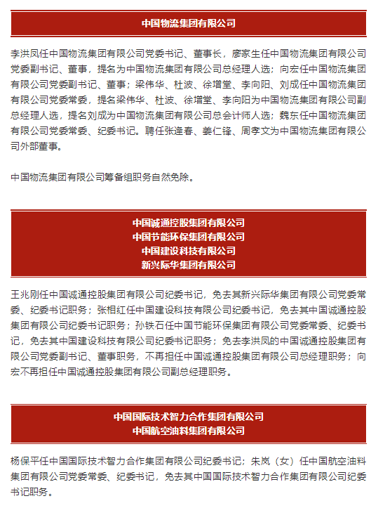 中国物流集团等10户央企宣布20名领导人员职务任免