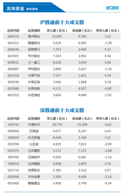 12月7日,北向资金合计净流入79.49亿元。其中沪股通净流入63.17亿元,深股通净流入16.32亿元。前十大成交股中,净买入额居前三的是中国平安、招商银行、中信证券,净卖出额居前三的是宁德时代、比亚迪、立讯精密。
