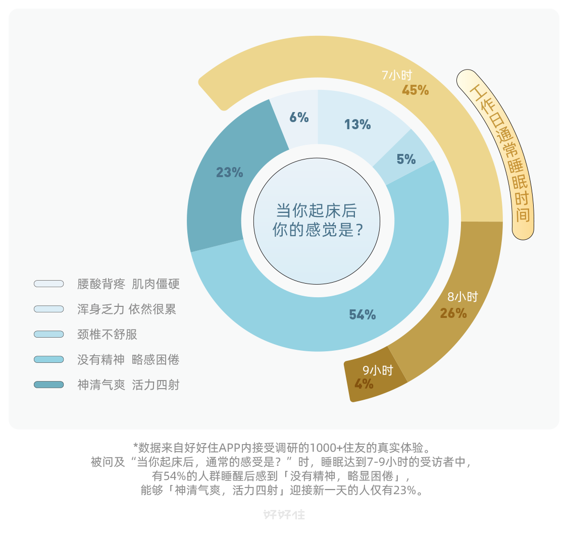 数据显示,超7成人认为自己处于亚健康状态,其中睡眠不好是亚健康的重要成因之一。从2013年至今,国民平均减少了近2小时的睡眠时间,近80%的人表示自己睡不好。