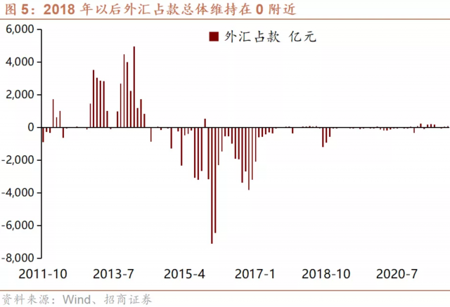 第一,自2018年起,央行已经退出了对于外汇市场的常态式干预,意味着央行外汇占款的变动非常微小,因此资本流入与流出不再直接影响央行的流动性投放。2017中-2020年,央行外汇占款余额的年度增量进入平衡期,外汇占款逐渐过渡至0增长。2017年全球国际资本流动首次走出危机后的低谷期,预示着当前全球国际资本流动形势已走出次贷危机阴影,走上一个温和回升的趋势。中国资本市场开放的制度性红利,也带来比较稳定的国际配置资金。从国内因素来看,企业偿还负债的购汇进程结束,机构对外投资的行为仍受监管约束。因此,我国外汇市场供求趋向均衡,这是央行减少干预外汇市场的基础。而推行汇改以及使人民币汇率由市场供求决定是央行退出常态式干预的出发点。汇率制度改革是一条单行线,意味着央行外汇占款将继续维持在0附近,并不再充当央行流动性投放的渠道。