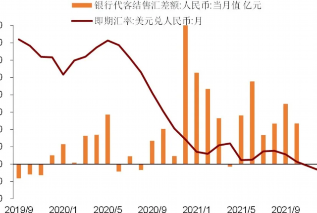 第三,在央行不干预的背景下,银行结售汇与人民币汇率的关系也发生了变化。银行代客结售汇是指银行为客户办理的结汇和售汇业务,过去在央行投放外汇占款的时代,资本流入和人民币汇率走强与代客结售汇差额呈现同向关系,因为彼时结售汇差额主要反映实体部门的结汇规模变化,资本流入越多、人民币汇率越强,结汇越多,结售汇顺差越高,在这一阶段,由于银行体系最终可以将外汇卖给央行,结售汇不涉及对银行体系的资金占用。但在央行不再接收这些外汇之后,代客结售汇顺差就转变为反映实体部门和银行体系双方的意愿,唯有银行愿意承接、且实体部门希望结汇,才会造成代客结售汇顺差的上升。在此过程中银行也能够发挥一定的主动性,如果实体部门结汇意愿较强,但是银行不愿意净买入大量外汇,那么银行会更多发挥中介作用,将外汇在不同的实体主体之间转移,而不形成净结汇,但这样的结果类似于外汇市场之间少了一个大的外汇购买方,这会造成人民币汇率出现更大程度的升值,这也解释了为什么10月代客结售汇顺差较9月下降,但是人民币趋于升值的原因。