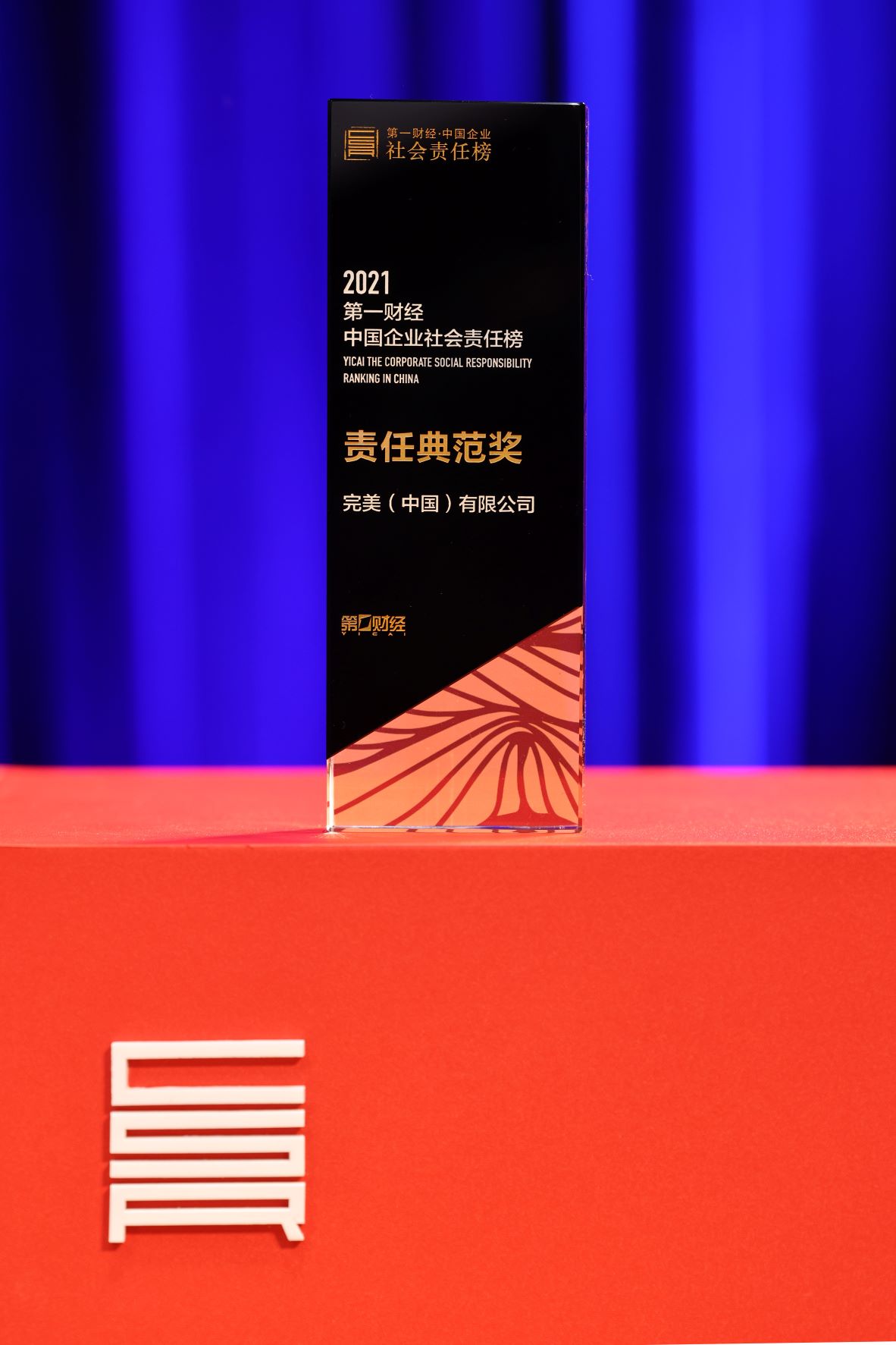 12月17日,2021“第一财经·中国企业社会责任榜”颁奖盛典在上海世博会博物馆顺利举行,40家致力于社会责任创新与实践的企业荣膺责任典范、环境生态贡献、社会创新贡献、共享价值贡献、商业治理贡献5大类奖项。依托第一财经专业、权威、独创的“仁商”评价体系,历时近半年,经过问卷调研、企业面访、专家评议和新闻观察等环节,完美(中国)有限公司成功入围“2021第一财经·中国企业社会责任榜”,荣获“责任典范奖”。