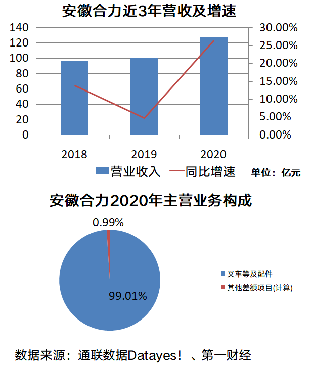 根据通联数据Datayes!,2000-2020年,公司营业收入从4.9亿元增长至约128亿元,CAGR为18%;其中2020年叉车销量突破20万台,全国市占率达到27.5%,均创历史新高。“十三五”期间,公司实现整机销量复合增长率20.6%,高于行业3.9个百分点;营业收入、净利润复合增长率分别达到15.3%和12.2%,均呈现两位数增长。