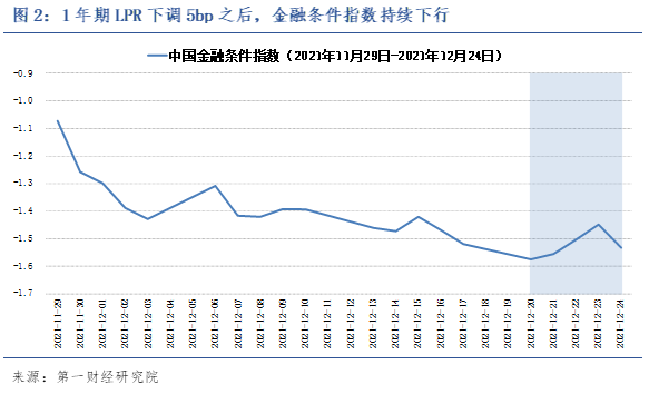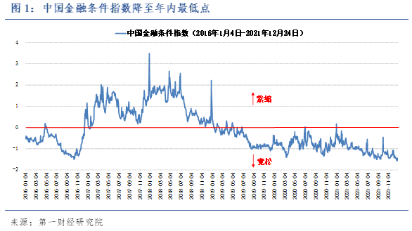 截至2021年12月24日的一周,第一财经研究院中国金融条件日度指数均值为-1.52,较前一周下降0.05;指数年内下降1.03。